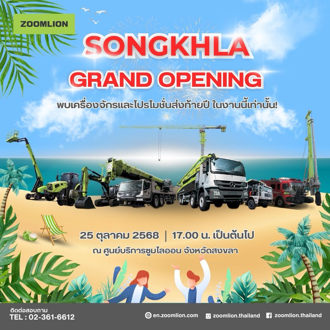 ชาวหาดใหญ่พร้อมไหม ? ซูมไลออนบุกสงขลา! เปิดศูนย์บริการแห่งใหม่ พร้อมเซอร์วิสและสต๊อกเครื่องจักรแน่น พบกันที่งานเปิดศูนย์บริการสงขลาแห่งใหม่ โชว์เครื่องจักรกลหนักสุดล้ำ